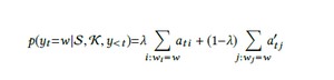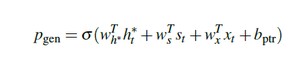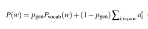 和Attention Mechanism中的的计算方式极其相似对吧?得到Pgen之后,我们就可以这样计算最终预测出一个词的概率: