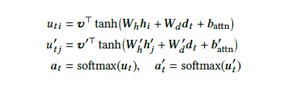 这个公式的意思是说,当预测时刻t的单词时,我们就来看看在过往的t-1个时刻中,源文本被关注程度的分布情况如何,接下来我们用一些方法来做出相应调整。调整的方法是这样的: