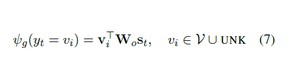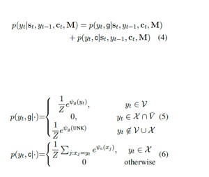 是不是和之前的文章的公式非常相似?不同的是ACL17的文章还计算了一个软选择的概率Pgen用来结合生成概率和复制概率,而在这里则是直接加和。