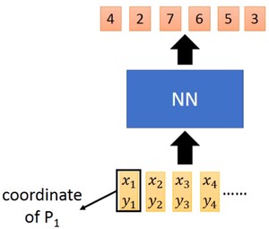 把所有点的坐标丢到NN里面,要求得到最外围点的下标。这个问题实际上可以看做是Sequence-to-sequence问题