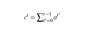 Coverage机制的思想同样简单而直接:每次预测的时候我们都会得到概率分布,这个就反映了模型对源文本各个元素的注意程度(概率越高的部分被认为得到越多的注意力),如果模型在预测时总是注意相同的部分,那么就很有可能会预测出相同的单词,因此为了防止这种情况发生,我们就强迫模型多去关注之前没被注意过的角落。公式如下:
