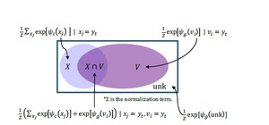 为了更好地理解,作者绘制了一幅词汇分布图。图中X部分是输入序列的词汇集合,而V部分代表输出词汇集合,当然,通常情况下两个集合都存在交集,而在X和V并集之外的部分就是未知词汇:UNK。所以我们用一句话来解释上面的公式:当某个词是输入序列独有的则该词的生成概率为0,复制概率不变;若某个词是输出词汇表独有的则该词的复制概率为0,而生成概率不变;若某个词既存在于输入序列又存在于输出词汇表则生成概率和复制概率都不变。最后,将生成概率和复制概率加和得到最终的概率。