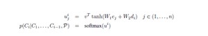 第一个公式和之前没有区别,然后第二个公式则是说Pointer Networks直接将softmax之后得到的当成了输出,让承担指向输入序列特定元素的指针角色。