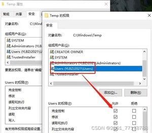 3、选择“本机用户名(Users)”后修改下方的Users权限,单击“完全控制”后的“允许”框。