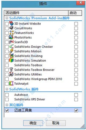 6、如果没有显示迈迪插件菜单,请到SolidWorks插件管理器中勾选迈迪插件。
