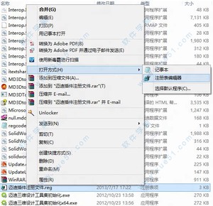 【注意】:如果没有弹出上面的注册提示窗口,说明您的系统打开注册表文件(.reg)的方式不是“注册表编辑器”,需要手工将文件【根目录迈迪插件注册文件.reg】用注册表编辑器打开,才能在SolidWorks中注册插件(如下图所示)