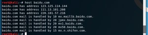 Host工具指将IP地址翻译成主机名。Kali linux内置了该工具,通过命令去执行即可。