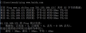 时间=38ms表示告诉我们数据包到目标往返一趟花费的时间;
