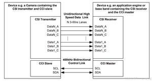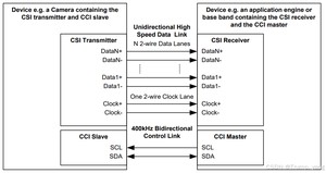 对于这两种物理层选项,摄像头控制接口(CCI)是一个兼容I2C标准的双向控制接口。