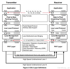 CSI-2规范定义了发射器和接收器之间的标准数据传输和控制接口。定义了两种高速串行数据传输接口选项。