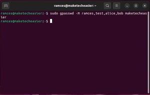 sudo gpasswd -M ramces,test,alice,bob maketecheasier
