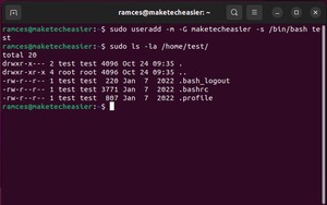 sudo useradd -m -G maketecheasier -s /bin/bash test