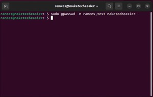 这将使“maketecheasier”组的成员名册包含“ramces”和“test”。但是,请务必注意, 标志始终会替换“/etc/group”文件中的用户值。