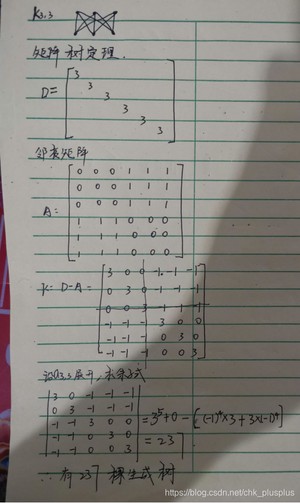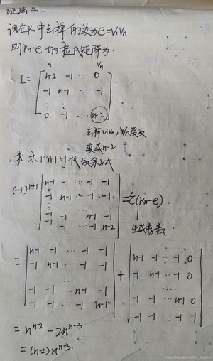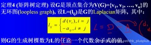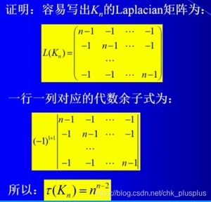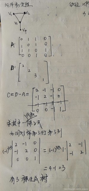 生成树的棵树是方阵C的任意一个余子式的值。也就是说方阵C的任意一个代数余子式都相等咯。