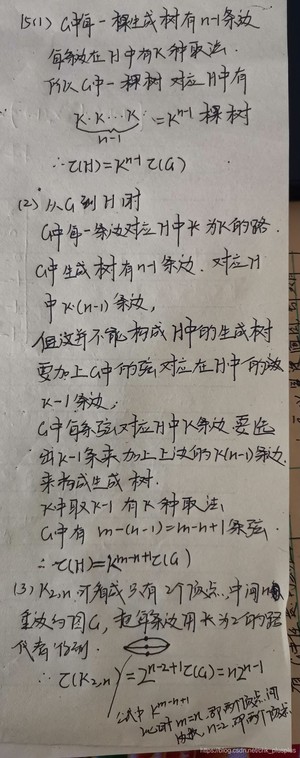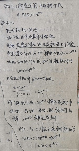 凯莱定理:图G的生成树的个数,等于图G减去一条边的子图的生成树个数