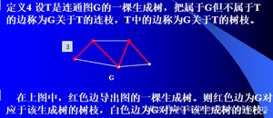 定义1:图G的一个生成子图T如果是树,称它为G的一棵生成树。若T为森林,称它为G的一个生成森林。