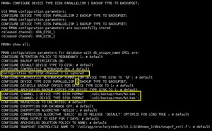 进入rman后输入命令查看RMAN当前配置:show all