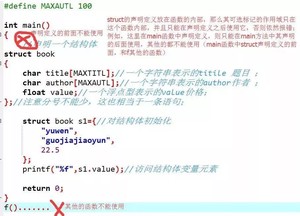 例如;printf(“%s %s %f”,s1.title,s1.author,s1.value);//访问结构体变量元素