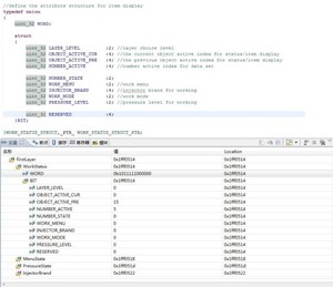 主要是分析第2和第3个数据域是否紧密链接的。OBJECT_ACTIVE_PRE赋值0b00001111,NUMBER_ACTIVE赋值0b00000101,其他变量都是0,看到WORD数值0b00。分析WORD数据,可以看到这款MCU还是小端格式(高位数据在高端,低位数据在低端,这里不对大小端进行讨论),断开数据变成(0)10111 ,正好是0101+1111,OBJECT_ACTIVE_PRE数据域,跨越了两个字节,并不是刚开始设想的那样。这就印证了上面的紧密链接的结论,也符合数据结果输出。