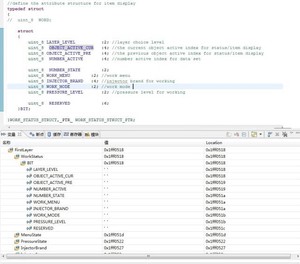 当换成uint_8后,可以看到地址空间占用大大减小,reserved_2只占用1个字节(0x1fff069f - 0x1fff069e),其他变量也都符合上面的结论猜想。但是,注意看上面黄色和红色的语句,总感觉有些勉强,那么我又会想,前两个变量数据域是9位,那么他们实际上是不是真正的独立呢?虽然在uint_8上面他们是不同的地址,在uint_32的时候是不是也是不同的地址空间呢?