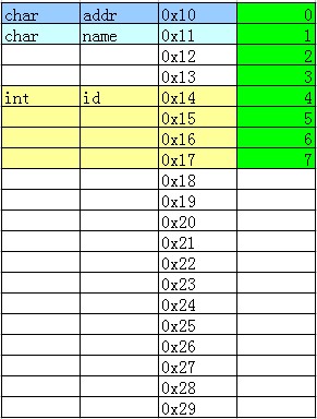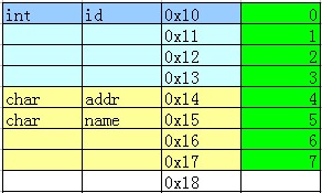 可以看到addr和name都只占一个字节,但是未满4字节,跳过2字节后才是id的值,这就是4字节对齐。结构体成员有int型,会自动按照4字节对齐。