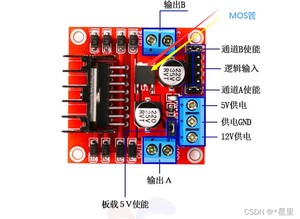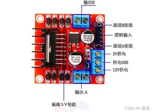 由于该驱动为 L298N 双 H 桥直流电机驱动芯片