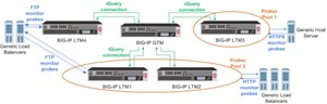 这里边详细介绍了F5 GTM的运作原理,以及出现了下边的图片,这个部分引起了我的担忧,当链路的GTM失效之后,因为GTM与LTM连接的子服务器以及子终端因为不在同一个网段中而无法进行工作: