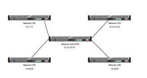 举个例子,GTM作为整个链路的核心设备,用于为LTM设备提供域名解析服务,在实际的生产网络中中GTM在网络中拓扑并不是与LTM存在于同一个网段的,画一个图来表述这个问题: