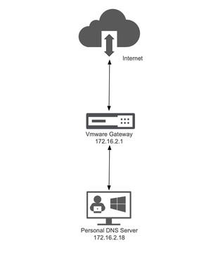 从上面的模拟DNS虚拟机网络的拓扑图中,NameServer(NS)是与主机在同一个网段下的,但实际上,在生产链路中的F5 GTM设备并不是和其他的服务器连接在同一个网段下的,这就会带来一个问题,就是当终端想要访问外网段的DNS解析服务器时,NameServer 会不会不能为其提供服务?