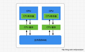 正如上图所示,经过简化CPU与内存操作的简易图,实际上没有这么简单,这里为了理解方便,我们省去了南北桥并将三级缓存统一为CPU缓存(有些CPU只有二级缓存,有些CPU有三级缓存)。就目前计算机而言,一般拥有多个CPU并且每个CPU可能存在多个核心,多核是指在一枚处理器(CPU)中集成两个或多个完整的计算引擎(内核),这样就可以支持多任务并行执行,从多线程的调度来说,每个线程都会映射到各个CPU核心中并行运行。在CPU内部有一组CPU寄存器,寄存器是cpu直接访问和处理的数据,是一个临时放数据的空间。一般CPU都会从内存取数据到寄存器,然后进行处理,但由于内存的处理速度远远低于CPU,导致CPU在处理指令时往往花费很多时间在等待内存做准备工作,于是在寄存器和主内存间添加了CPU缓存,CPU缓存比较小,但访问速度比主内存快得多,如果CPU总是操作主内存中的同一址地的数据,很容易影响CPU执行速度,此时CPU缓存就可以把从内存提取的数据暂时保存起来,如果寄存器要取内存中同一位置的数据,直接从缓存中提取,无需直接从主内存取。需要注意的是,寄存器并不每次数据都可以从缓存中取得数据,万一不是同一个内存地址中的数据,那寄存器还必须直接绕过缓存从内存中取数据。所以并不每次都得到缓存中取数据,这种现象有个专业的名称叫做缓存的命中率,从缓存中取就命中,不从缓存中取从内存中取,就没命中,可见缓存命中率的高低也会影响CPU执行性能,这就是CPU、缓存以及主内存间的简要交互过程,总而言之当一个CPU需要访问主存时,会先读取一部分主存数据到CPU缓存(当然如果CPU缓存中存在需要的数据就会直接从缓存获取),进而在读取CPU缓存到寄存器,当CPU需要写数据到主存时,同样会先刷新寄存器中的数据到CPU缓存,然后再把数据刷新到主内存中。
