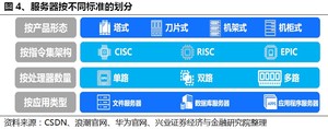 服务器的分类标准是多元化的,目前主要可按产品形态、指令集架构、处理器数量、应用类型等对市场上的服务器进行分类。