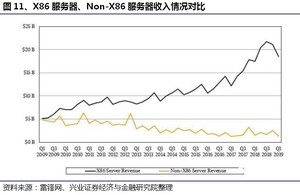 正如前文所述,按照指令集类型,服务器可以分为CISC服务器、RISC服务器、EPIC服务器。其中CISC服务器又被称为X86服务器,RISC和EPIC服务器又被统称为非X86服务器(也即Non-X86服务器)。从服务器的产业趋势来看,目前正形成双强的局面,其中X86服务器以Intel/AMD处理器为主导,而非X86服务器以ARM架构处理器为主导。双方各有优劣势,将长期共存。