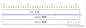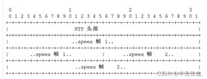 下面的例子演示的是一个RTP包中有两个Speex帧。这个例子中的Speex帧的长度是字节对齐的,所以不需要填补数据。