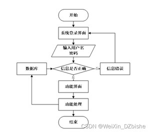 用户打开并进入系统后,会先显示登录界面,输入正确的用户名和密码,系统自动检测信息,若信息无误,则用户会进入系统功能界面,进行操作,否则会提示错误无法登录,操作流程如图3-3所示。