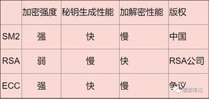 - SM2:同样基于椭圆曲线问题设计。最大优势就是国家认可和大力支持。