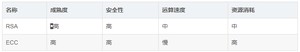 ECC 也是一种 非对称加密算法,主要优势是在某些情况下,它比其他的方法使用 更小的密钥,比如 RSA 加密算法,提供 相当的或更高等级 的安全级别。不过一个缺点是 加密和解密操作 的实现比其他机制 时间长 (相比 RSA 算法,该算法对 CPU 消耗严重)。