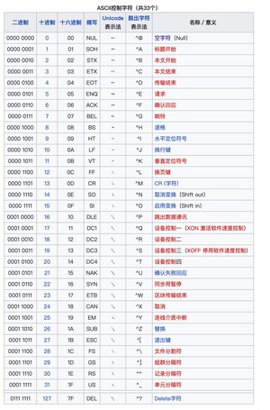 ASCII控制字符的编号范围是0-31和127(0x00-0x1F和0x7F),共33个字符。