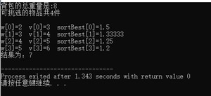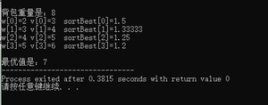 没有对每个商品的价值量进行排序,直接查找当前价值量的最大值,判断其是否能够装入背包,若能,直接装入,令当前价值量为0,继续寻找第二大价值量,不断循环即可。代码如下: