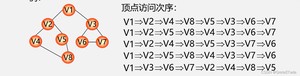 如图所示,拿到这么一个图我们从V1开始对其进行深度优先遍历,那么每一次遇到分叉点走不同的路径遍历到的结果是不一样的,所以对于一个图的深度优先变量结果可以为多种。