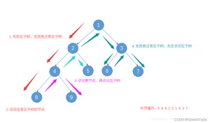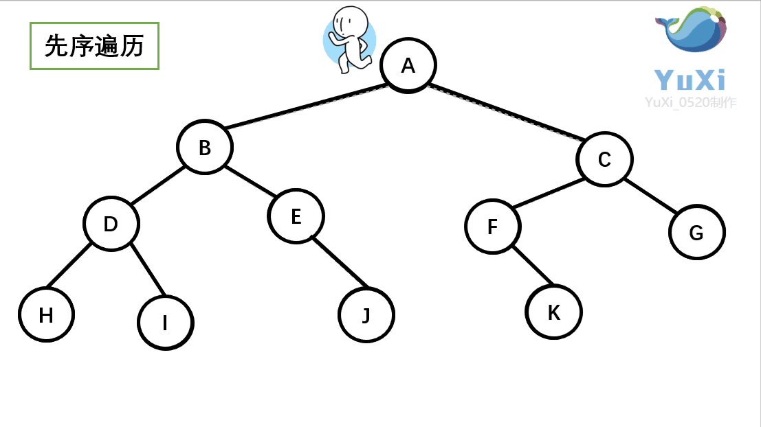 前序遍历就是从根结点出发,一直向左子节点走,直到左子节点不存在然后返回到上一个节点走这个节点的右子节点,然后一直往右子节点走,同样的也是走不通为止就返回。很显然这种一路走到黑,黑了就回头的方式,就是深度优先遍历的过程。