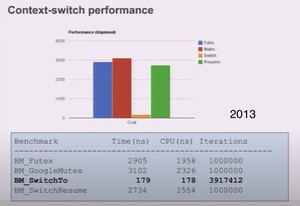 正常情况下线程有用的 CPU 时间片都在数十毫秒级别,线程切换占总耗时的千分之几以内。协程的使用可以将这个损耗降低一个数量级(主要是去除了其他操作,比如 futex 等)