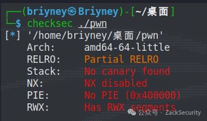 首先下载附件,使用checksec工具检查程序开启的保护: