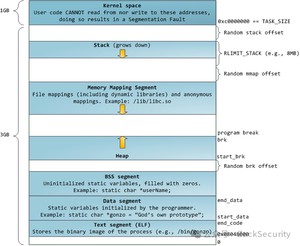- 内存映射段(Memory Mapping Segment):也称为文件映射区和匿名映射区,加载的动态库、打开的文件等均映射到该区域。