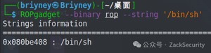 以上都可以使用,由于0x0806eb68可以控制三个寄存器,所以选用这个地址。然后找到/bin/sh的地址: