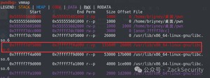 通过pwndbg可以看到,映射的区域有可执行权限: