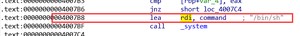 那么溢出ret到执行system(“/bin/sh”)的地址即可,双击/bin/sh,ctrl+x追踪到/bin/sh的地址为0x04007B8: