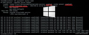 如图下所示,表示SSH 服务开机自启enabled,SSH 服务状态是active