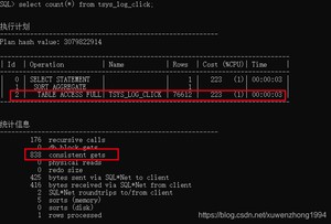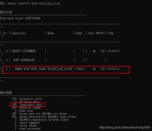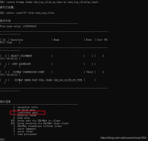 我们在不同前提下进行了三次统计查询,在未建索引的情况下,统计查询走的全表扫描,代价是223,逻辑读是838;在非空列r_id上建BTREE索引之后,统计查询走的索引快速扫描,代价是46,逻辑读是193;在操作类型列上建位图索引之后,统计查询走的位图索引快速扫描,代价是3,逻辑读是7。