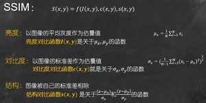 SSIM公式基于样本x和y之间的三个比较衡量:亮度 (luminance)、对比度 (contrast) 和结构 (structure)。