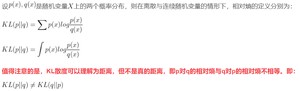 相对熵:(relative entropy),又被称为Kullback-Leibler散度(Kullback-Leibler divergence,KL散度)或信息散度(information divergence),是两个概率分布(probability distribution)间差异的非对称性度量 。在在信息理论中,相对熵等价于两个概率分布的信息熵(Shannon entropy)的差值。